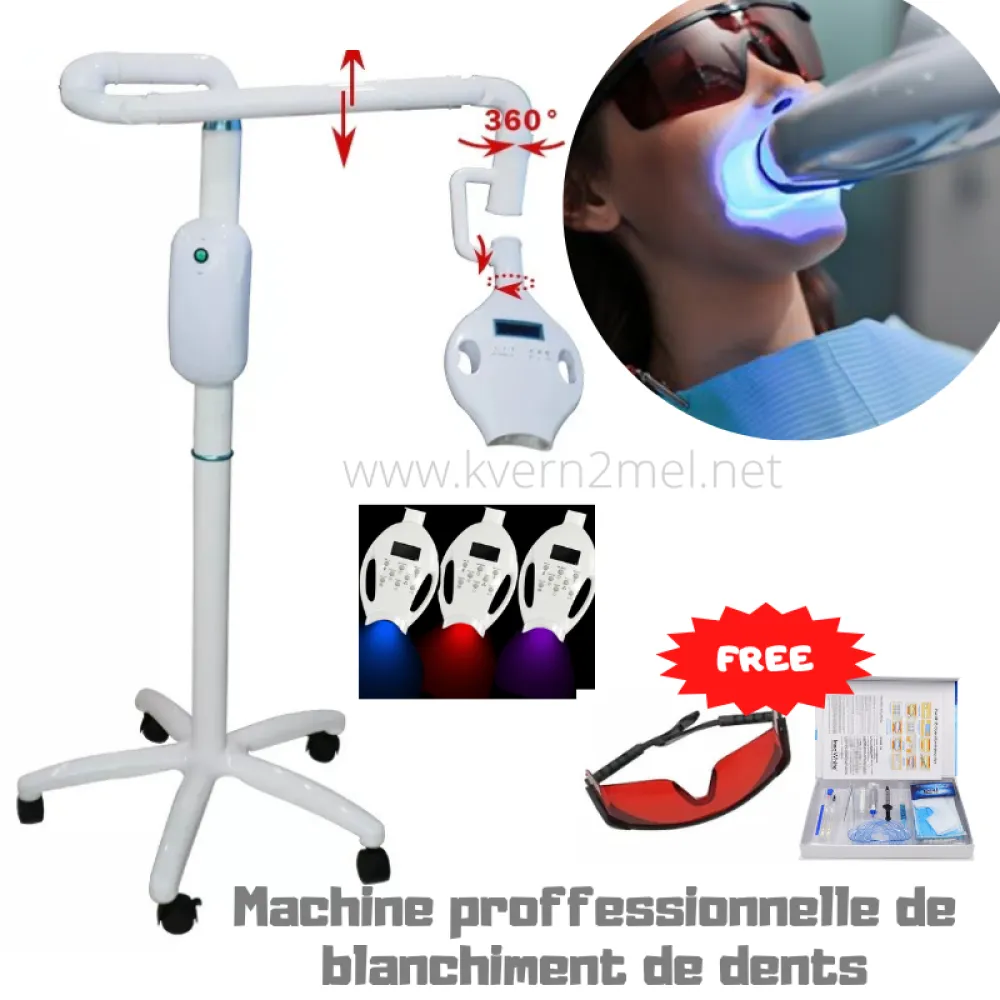 La machine professionnelle avec support est vendue en plus avec guide d'utilisation, et accessoires (lunettes - ecarteurs de bouche)