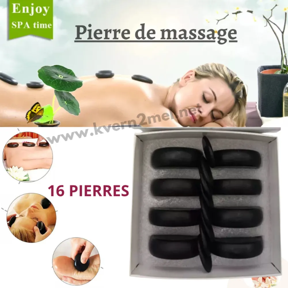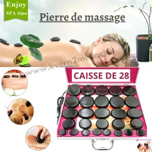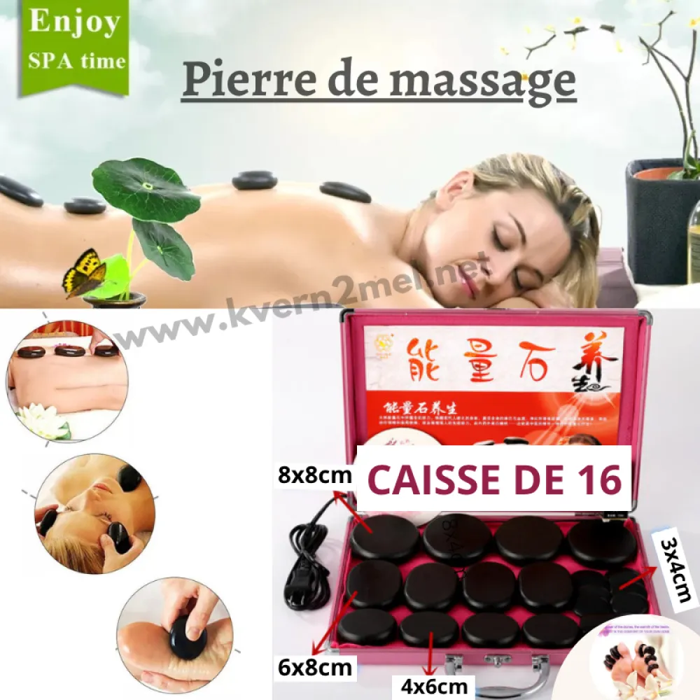 Ensemble de pierres chaudes pour relaxation. Il aide aux massages et permet de soulager le stress et douleurs. Vendues avec sa caisse eletrique permettant de les chauffer.