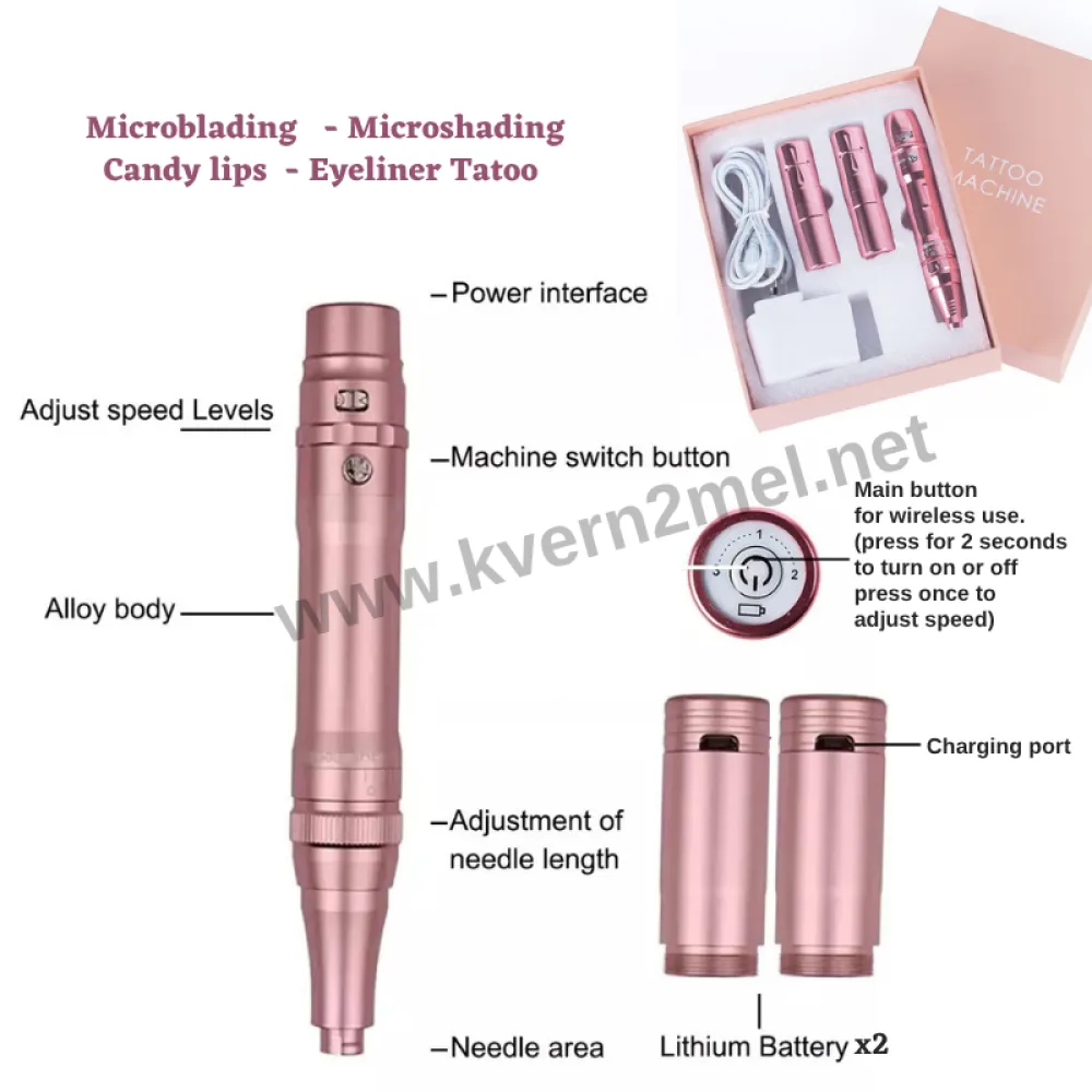 Le dermographe quant à lui sert à la réalisation des techniques de maquillage que sont le microshading, microblading, eyeliner tatoo et candy lips. Il est disponible en 2 variantes: avec batterie integree et l’autre avec 2 batteries supplementaires
