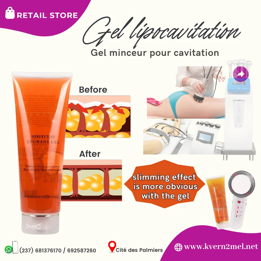 Le gel lipocavitation est un gel minceur a utilisé absolument en combinaison avec les machines minceurs (lipocavitation). Disponible en 2 formats pour visage et corps