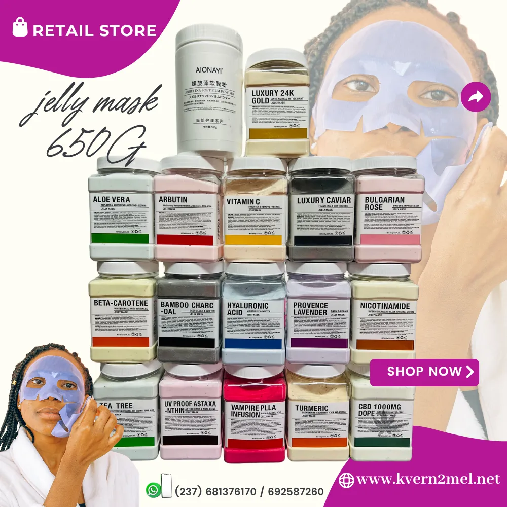 Format 650G disponible en 17 parfums ( ✨Spiruline✨Nicotinamide✨Tea tree✨Acide hyaluronique✨Luxury caviar✨Bamboo charcoal✨Vitamine C ✨Collagen ✨CBD ✨UV Proof ✨Aloe vera ✨Vampire pilla ✨Rose ✨Tumeric ✨Lavande ✨Beta-carotene ✨Arbutine ✨Luxury 24k gold)