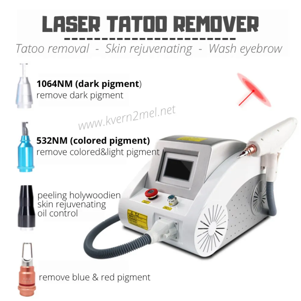 Le laser tatoo remover permet d’effacer les tatouages et tâches pigmentaire, réaliser le peeling hollywoodien (peeling chimique). La machine est fournie avec plusieurs têtes de rechange, gel ultrasons, gel au carbone et 1 paire de lunettes de protection laser et guide d’utilisation pratique.