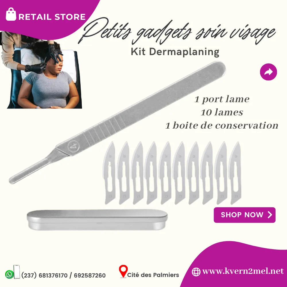 Le kit dermaplaning composé d'un port lame - 10 lame stériles - 1 boîte de conservation permet d'éliminer la couche supérieure de la peau, où se trouvent les cellules mortes, ce qui stimule le renouvellement cellulaire. La peau sera plus lisse et lumineuse et absorbera les produits de soin et facilitera l'application du maquillage.