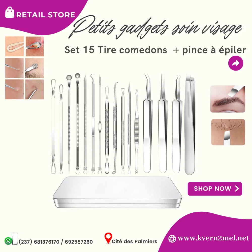 Le set tire comédons est constitué de 15 outils permettant de nettoyer et d'extraire les comédons et autre pince permettant d'épiler
