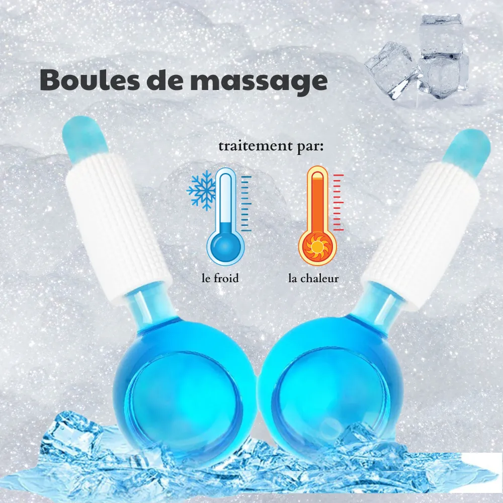 Boules de massage outil de beauté permettant de réaliser des soins revitalisants (utilisé à froid à 8°C) et des soins relaxants ( utilisé à chaud à 43°C). Vendue en paire