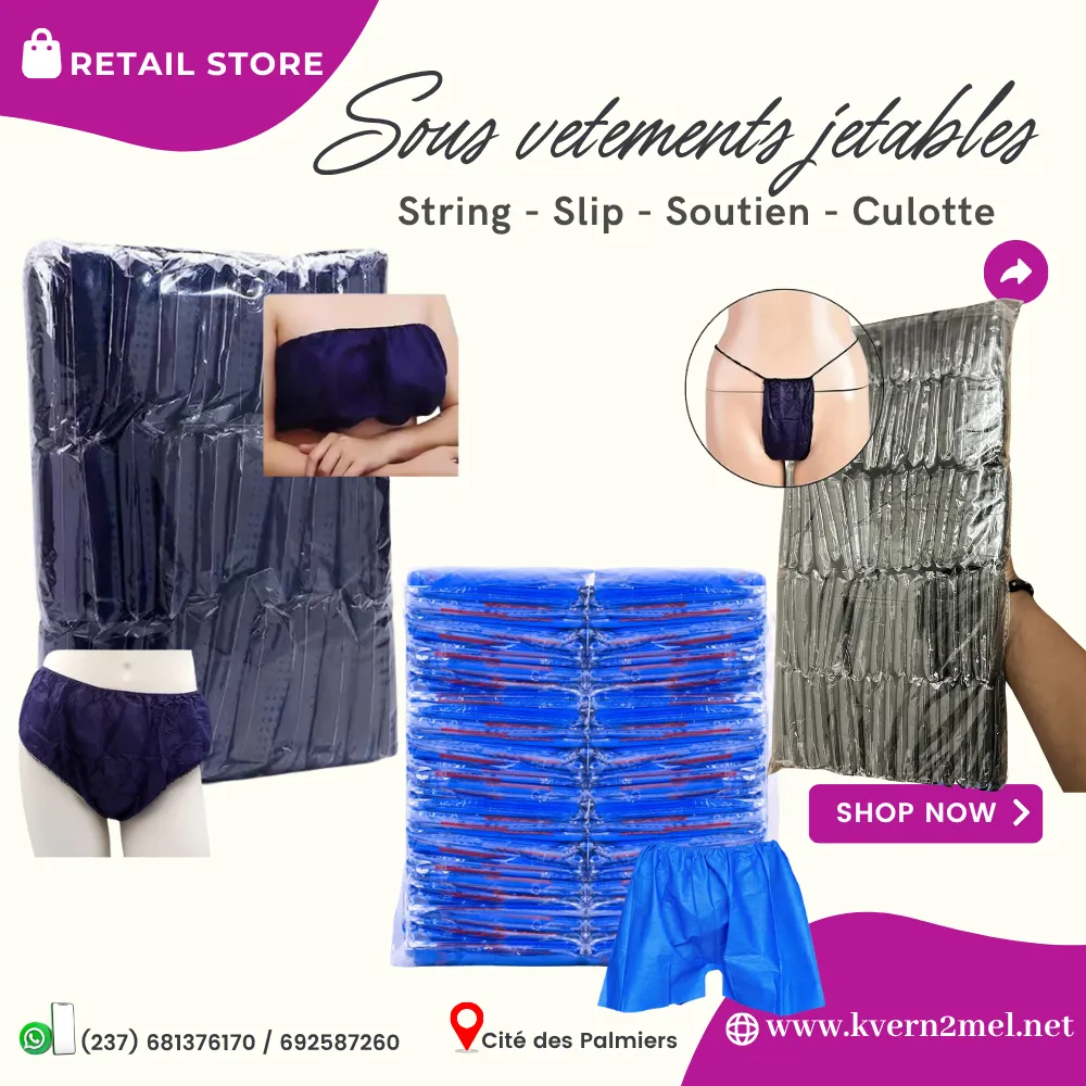 Equipement jetable pour spa et institut de beaute. Les sous vetements jetables sont disponibles pour femmes etr hommes. Ideal pour les spas et salons de beaute.